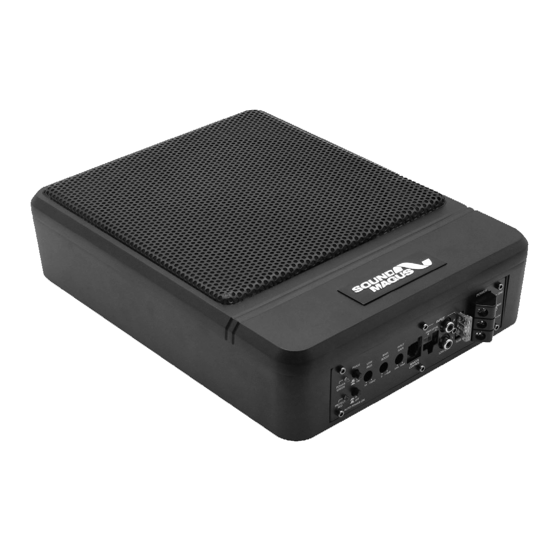 CAJA AMPLIFICADA ESPECIFICACIONES SUBWOOFER 10" POTENCIA RMS: 150W THD:<0.4% SENSIBILIDAD: 90dB RESPUESTA EN FRECUENCIA: 20-150 Hz ENTRADA RCA Y ENTRADA DE ALTA BASS BOOST: +18db (20Hz) FUSIBLE: 25A