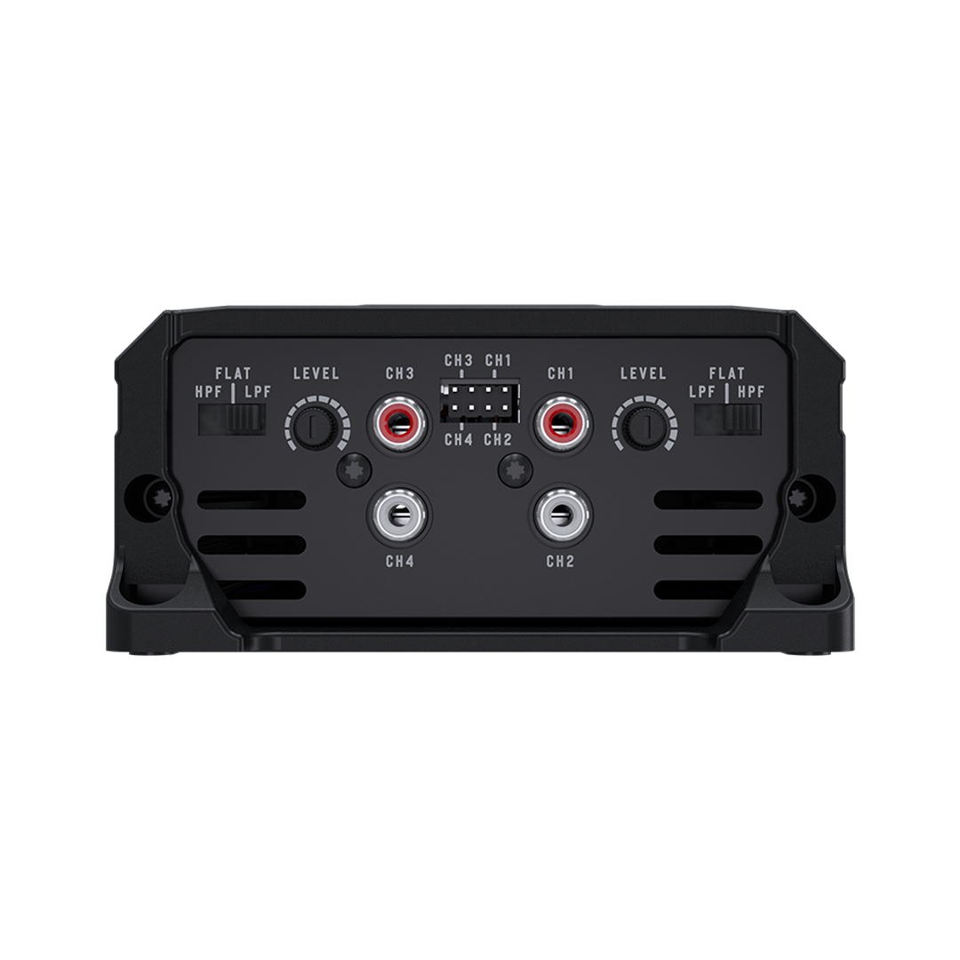 Potência RMS em 2 Ohm 14,4V 4 x 200W