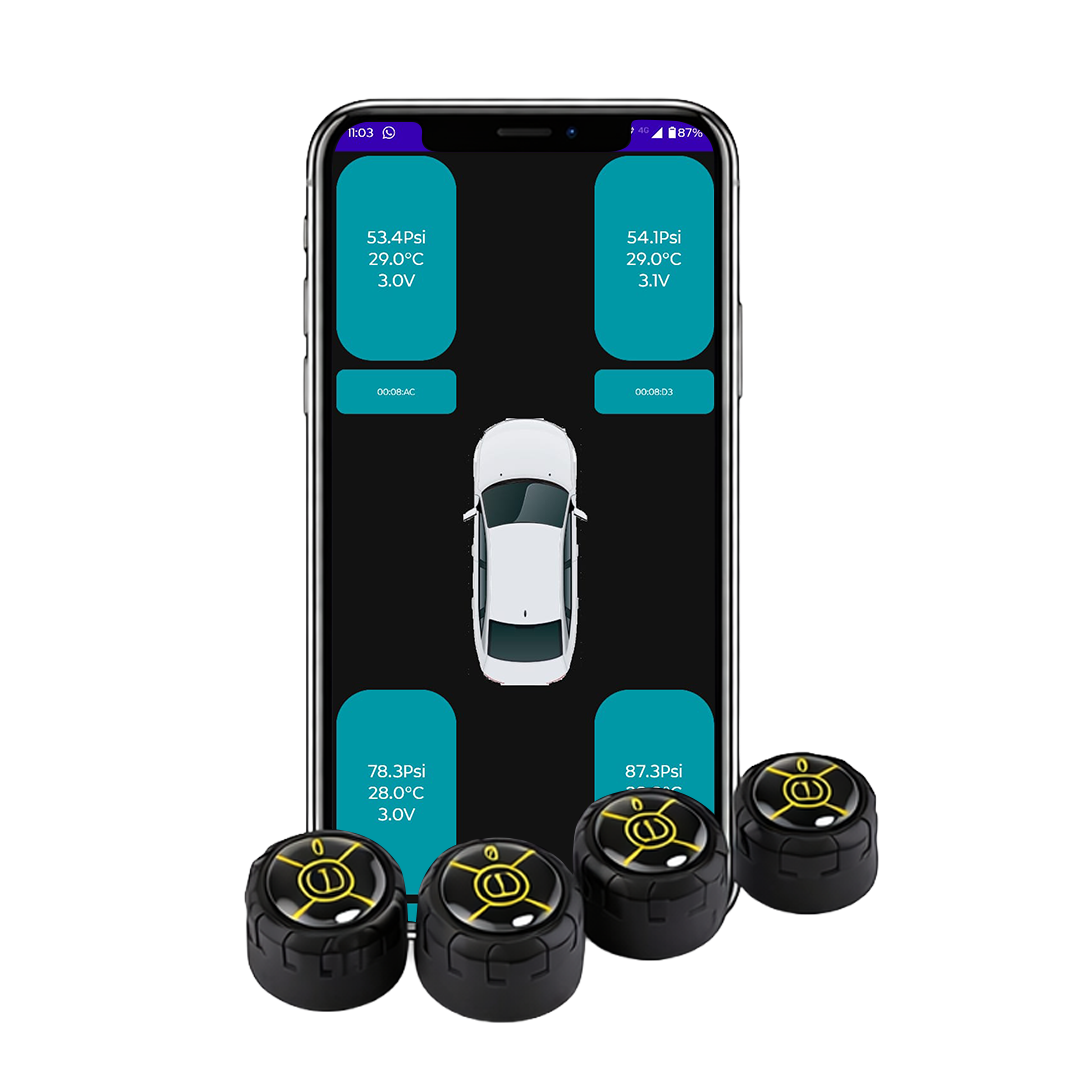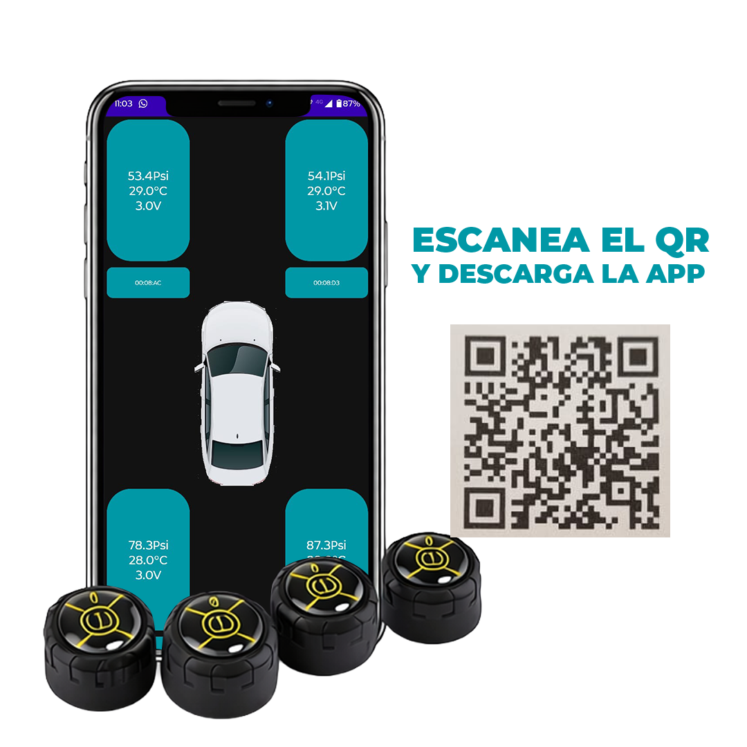 App que permite visualizar en tiempo real presión y temperatura de cada neumático y tensión de la batería del sensor.
